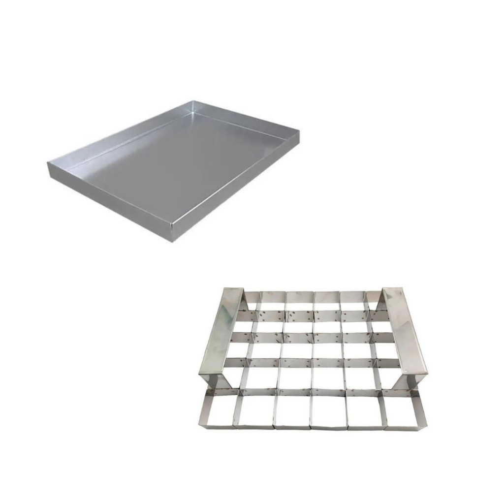 KIT CORTADOR 4X4 C/36 PEDAÇOS INOX ASSADEIRA 25X25X3 BROWNIE ARO QUADRADO CAVIDADES