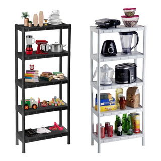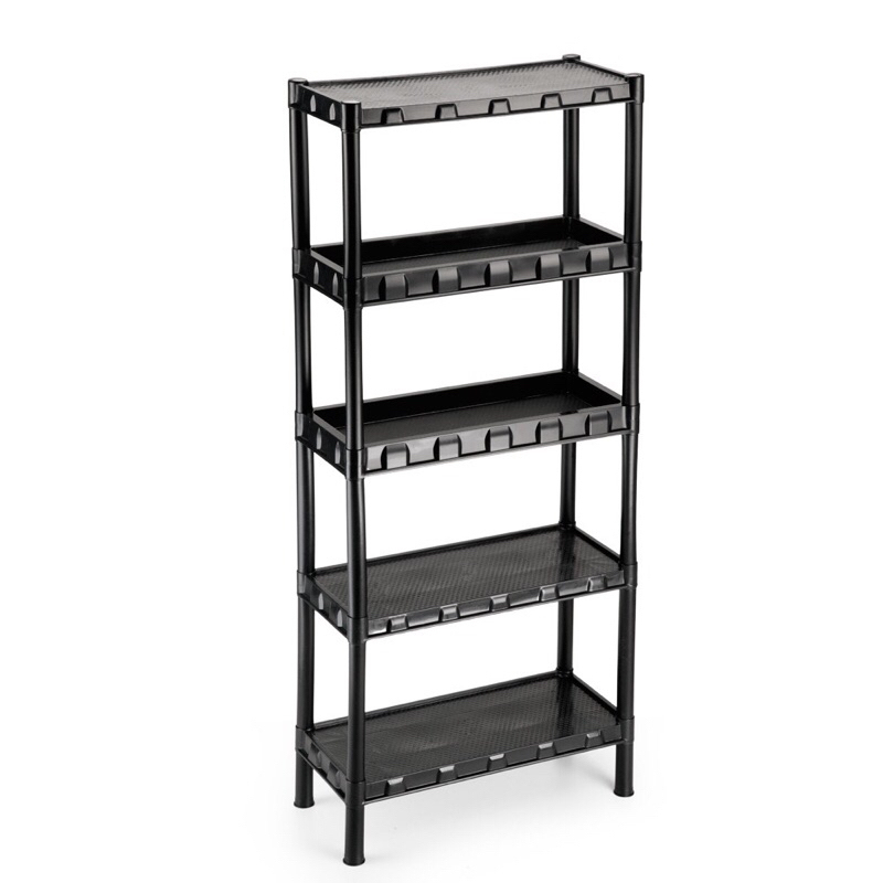 Estante Preta Organizadora de Plástico 5 Prateleiras com Pezinhos Multiuso Utilidades Para Organizar Sua Cozinha Lavanderia Quarto Garagem Salão Livros Ferramentas Objetos Sala Mercearia Quitanda Mercadinho Bomboniere Depósito Estoque Arrumação