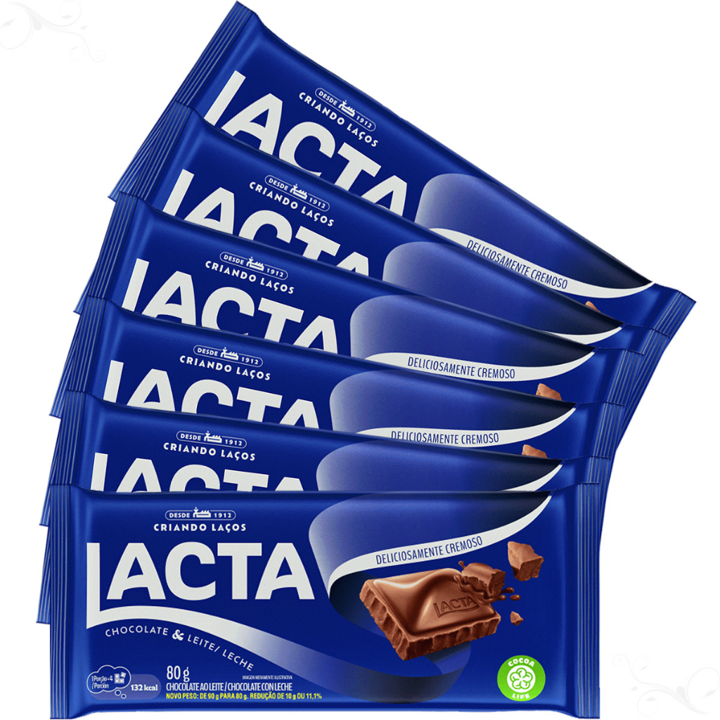 Barra de Chocolate Lacta ao Leite 80g tablete barrinha - 06 unidades