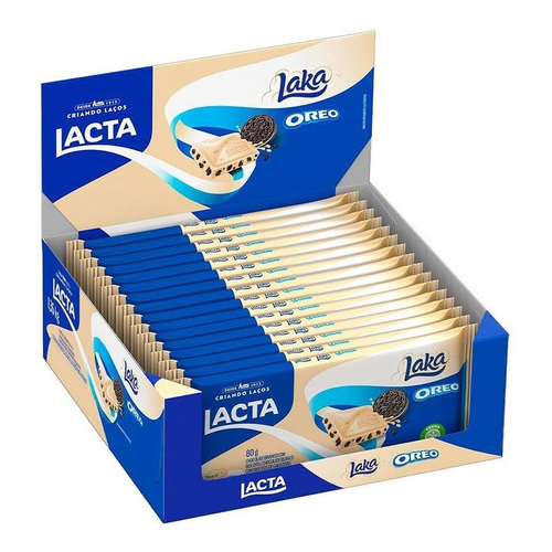 Caixa Chocolate Branco Lacta Laka Oreo 80g Embalagem com 17 Unidades Promoção