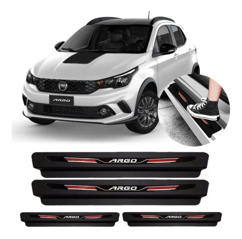 Jogo 8 Pecas Soleira Sport Resinada Protecao De Porta Fiat Argo 2017 2018 2019 2020 2021 Preta com Vermelho