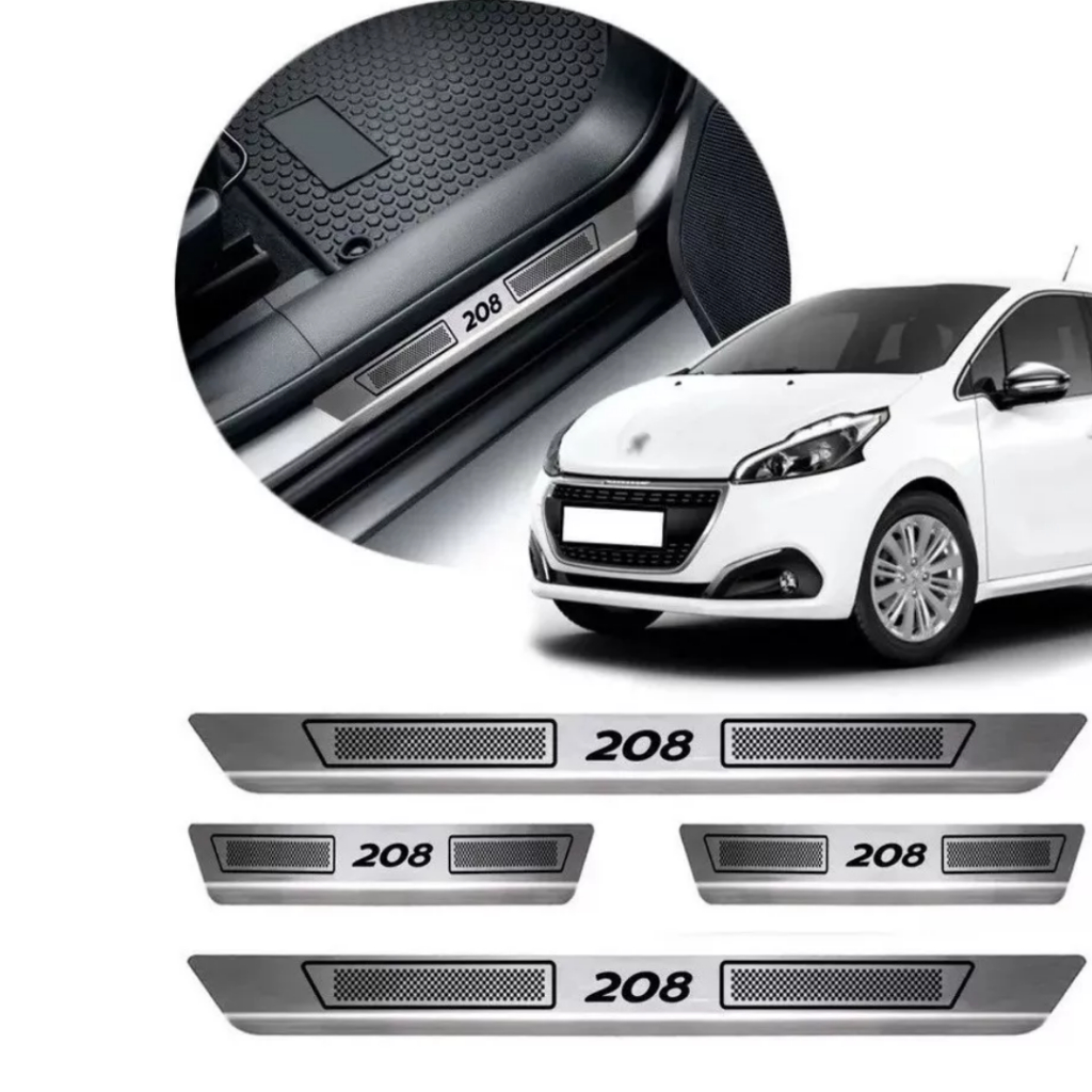 Jogo Soleira Porta Aço Inox PEUGEOT 208 2014 2015 2016 2017 2018 2019 2020 2021 2022 2023