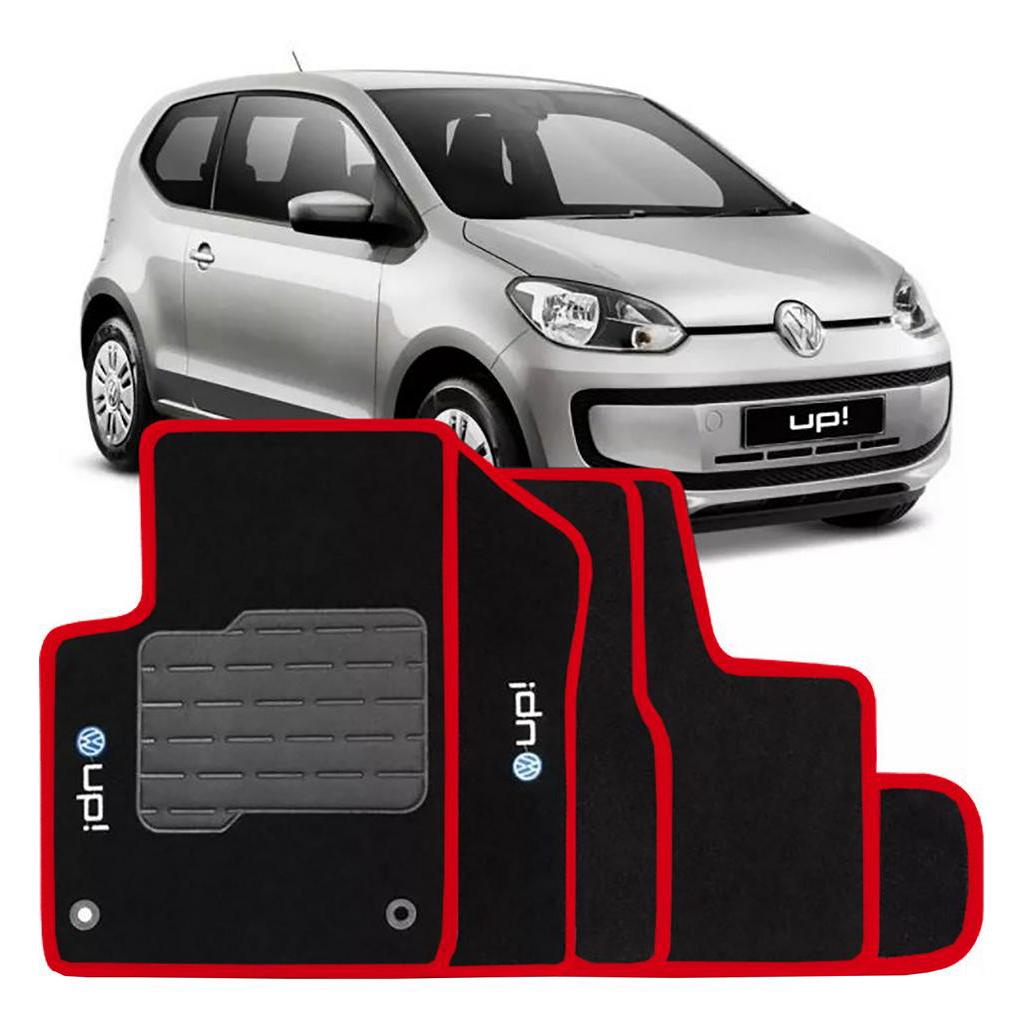 Jogo Tapete Automotivo Carpete Vw Up 2014 2015 2016 2017 2018 2019 2020 2021 Logo Bordado - Acabamento em Vermelho