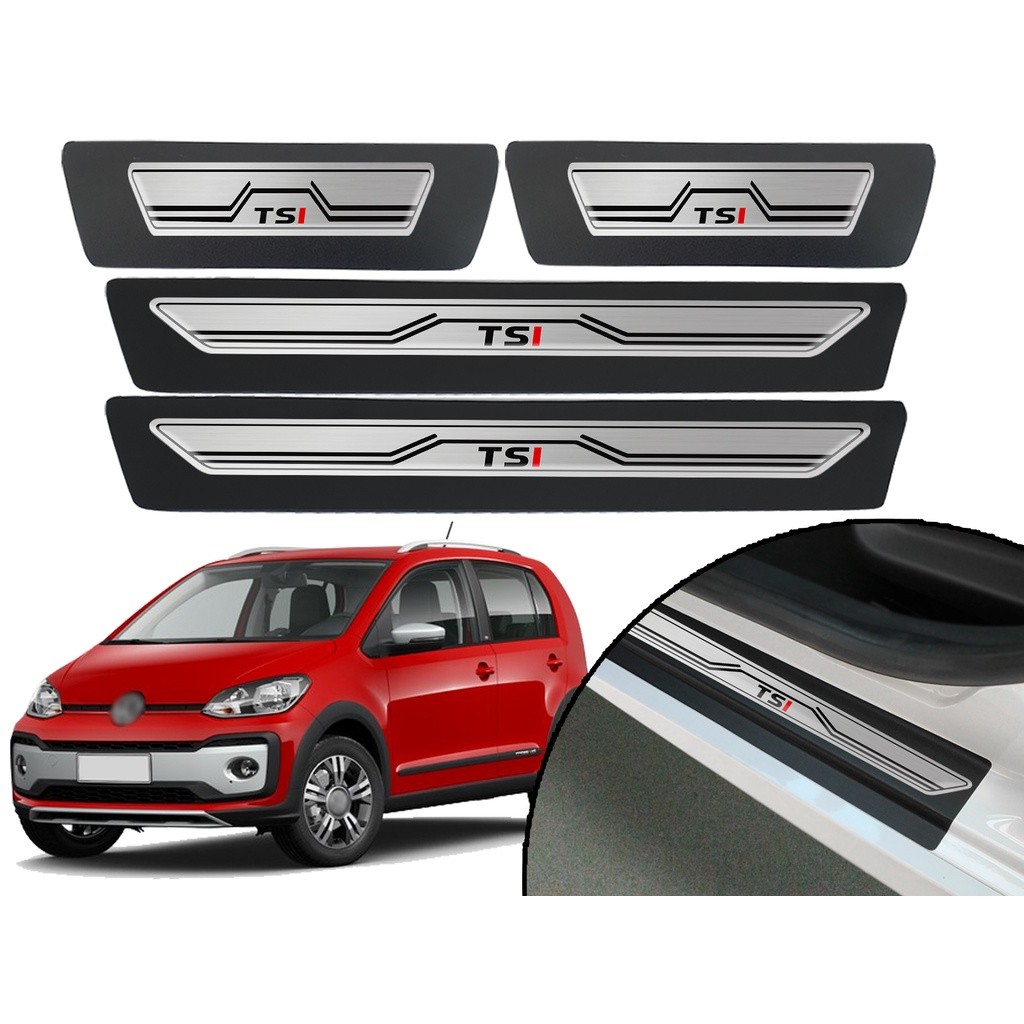 Jogo De Soleira Resinada Porta Modelo Aço Escovado Volkswagen Up TSI 2015 2016 2017 2018 2019 2020 2021