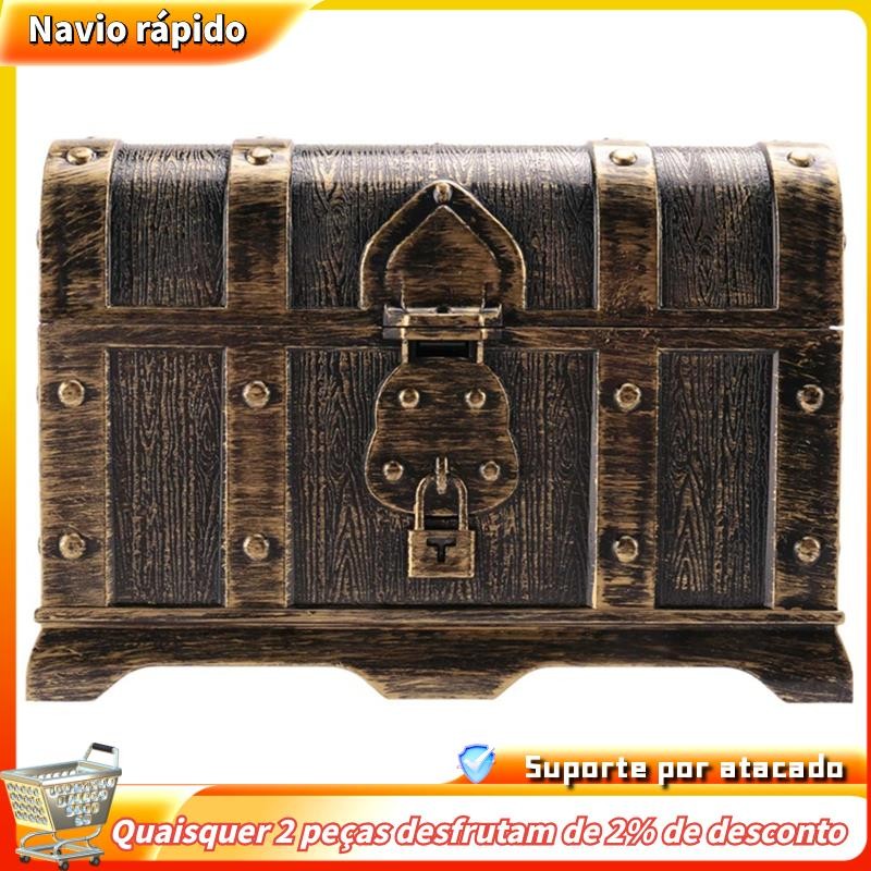 Baú de tesouro pirata de madeira, organizador de joias, caixa de armazenamento