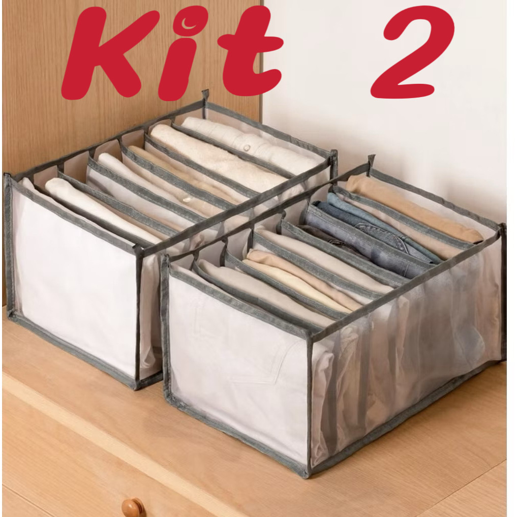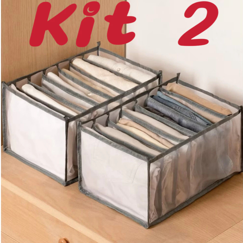 Kit 2 Organizador de gaveta de guarda-roupa 36x25x20 cm com 7 divisórias espaçosas, su