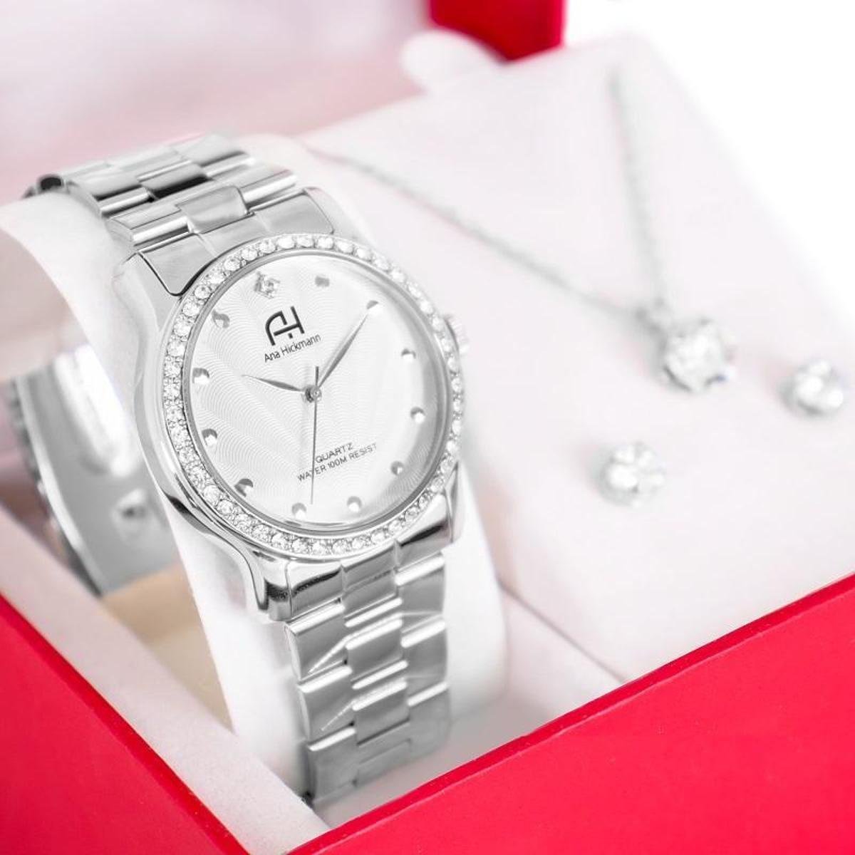 Kit Relógio Feminino Champion Ana Hickmann Prova D'Água Cristais AH28035Q