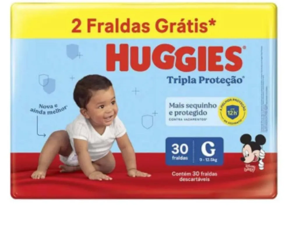FRALDA HUGGIES TRIPLA PROTEçãO MEGA G COM 30 UNIDADES