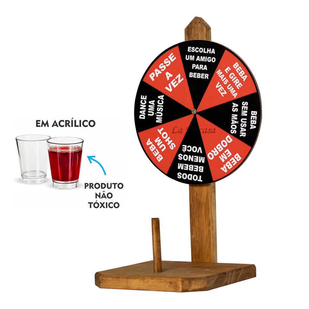 Roleta Drink Shot Jogo Divertido Em Madeira Com Copo Para Dose