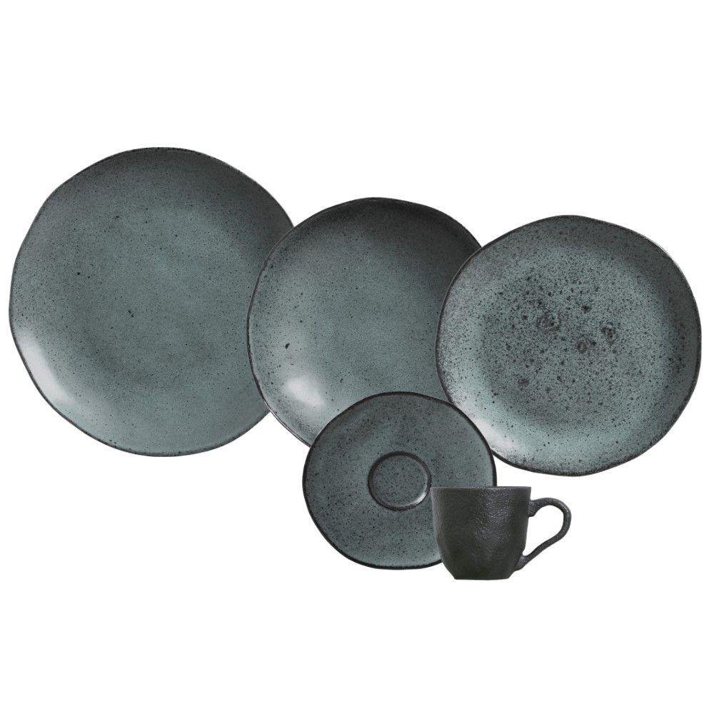 Aparelho de Jantar 24 Peças Stoneware Orgânico Petroleum e Echo Xícara Pires Prato Raso e Sobremesa Porto Brasil
