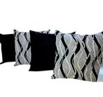 Kit 4 Capas De Almofadas Jacquard Geométrico Sued Preto 45x45 Zíper