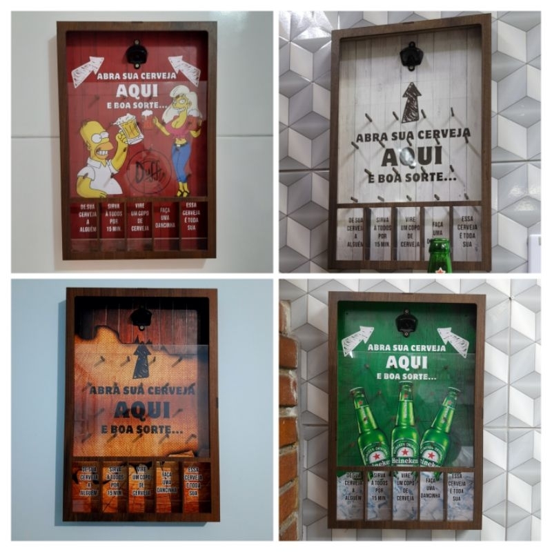 Jogo de Tampinhas com Abridor de Garrafas Premium, quadro cofre.
