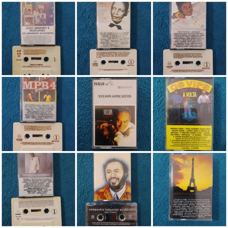 fitas K7 - João mineiro e marciano - Ataulfo Alves - aquarela brasileira Emílio Santiago - aquarela brasileira 2 Emílio Santiago - serenatas de ouro vol. 2 - mpb4 ao vivo - Luciano Pavarotti - C'est magnifique - os vips a volta - Nelson Gonçalves