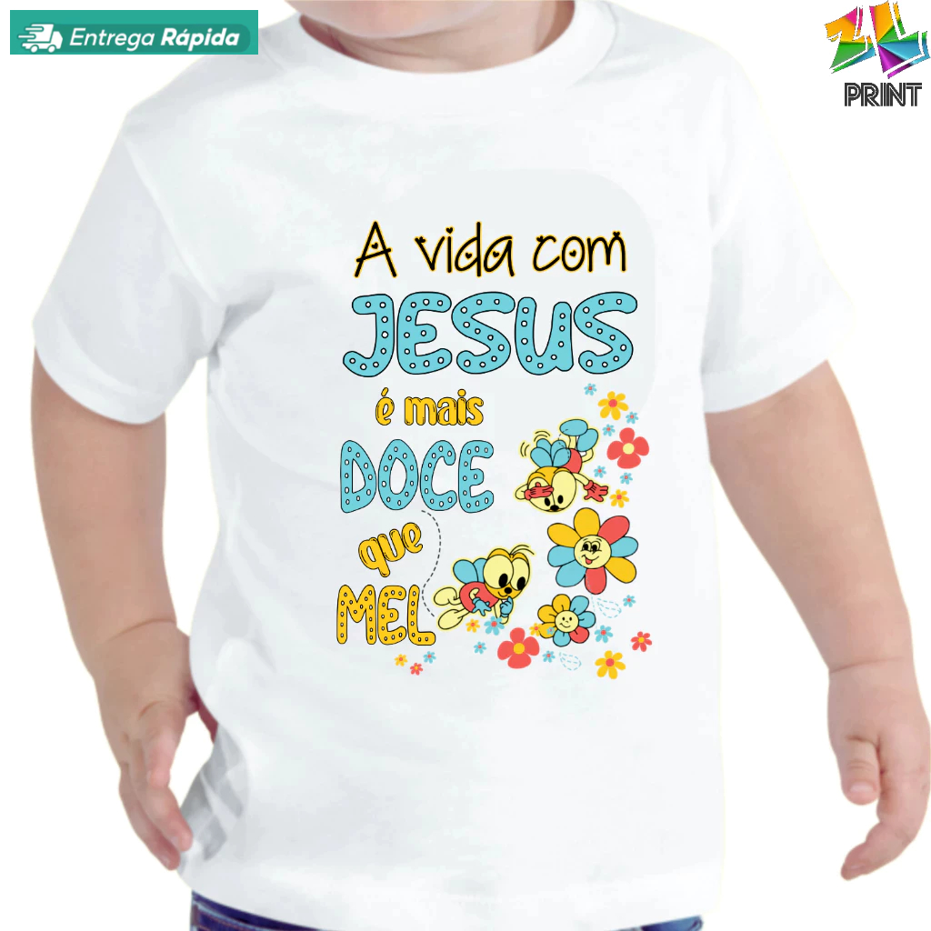 Camiseta Infantil A Vida com Jesus é mais doce que mel - Abelhinhas [est. Jesus 7] Religioso ZLprint