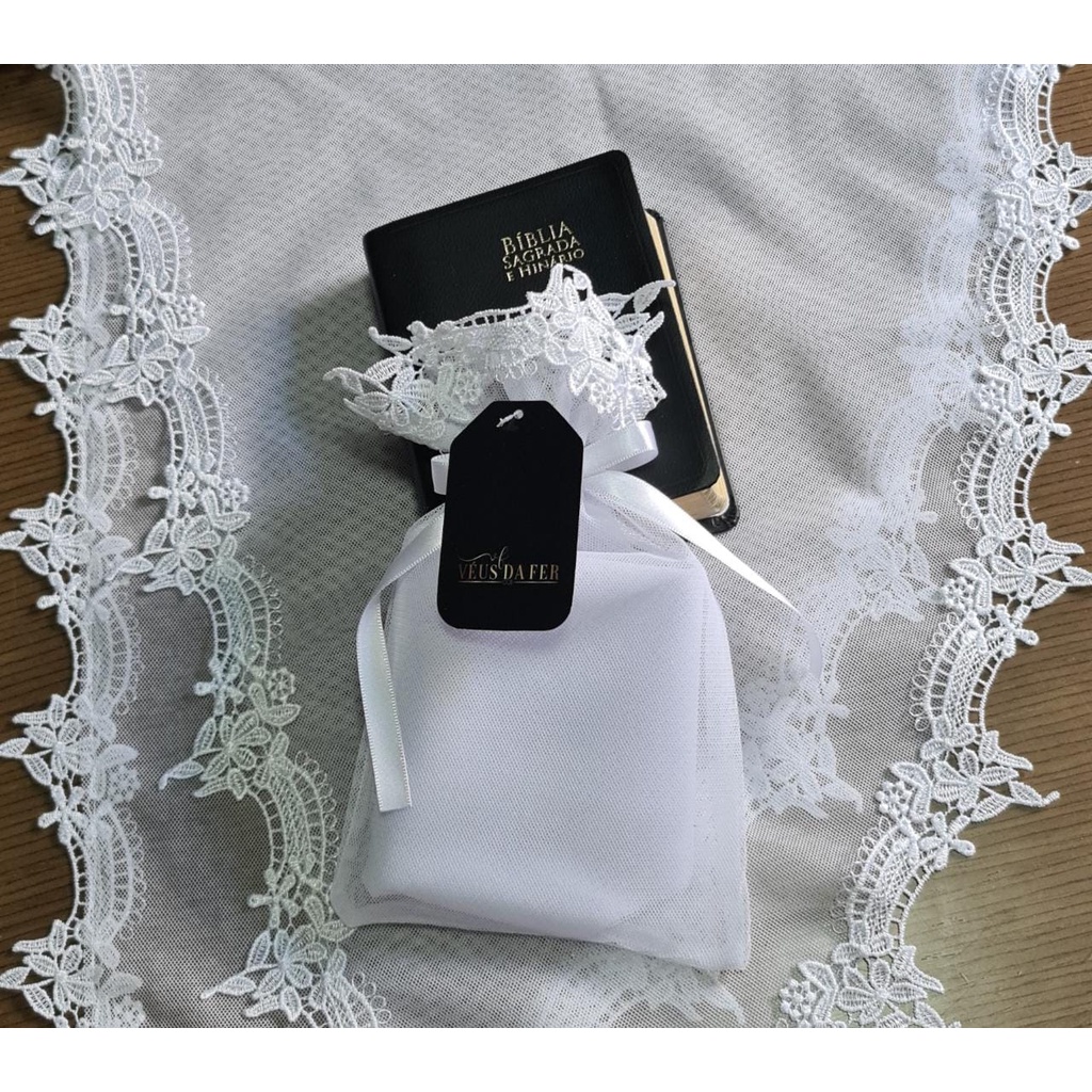 Véu Ccb Com Renda Guipir + Bolsinha N589