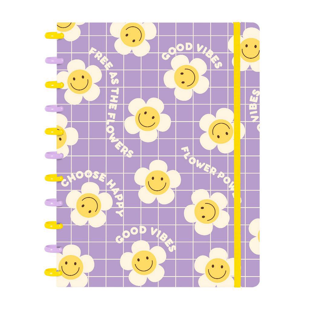 Caderno De Disco Inteligente ISCOOL Disc Grande 80 Folhas Retro Good Vibes Flores Lilás
