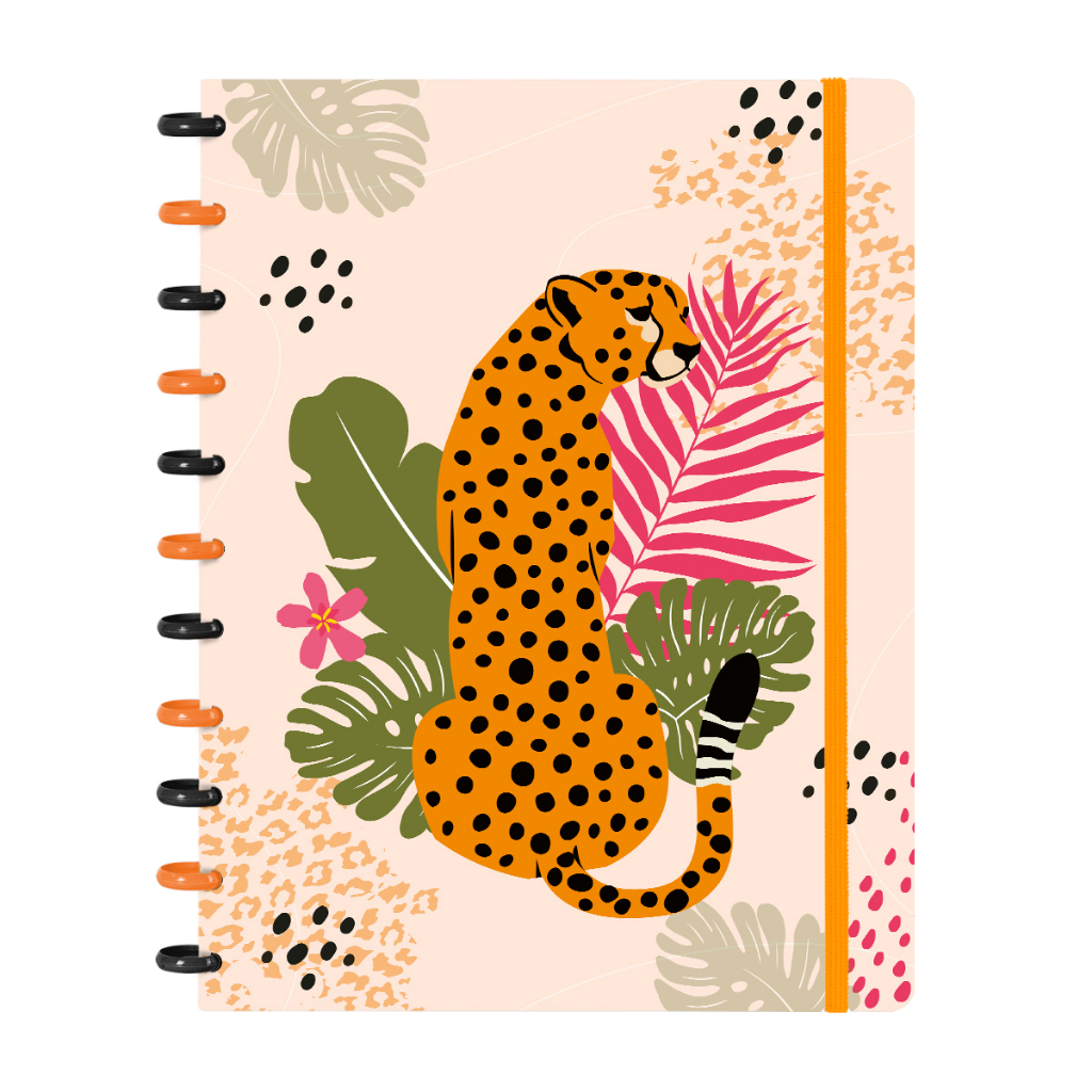 Caderno De Disco ISCOOL Disc Inteligente Grande 80 Folhas Tropical Onça Rosa