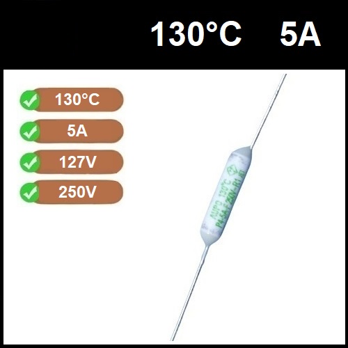 1 Fusível Térmico 5A 130C 130°C 130 Graus 250V