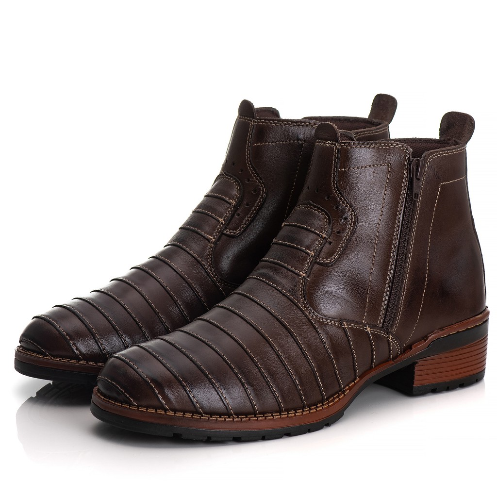 Bota Masculina Butina Antistress Ortopédica Botina Couro Legitimo Zíper Confortável Promoção