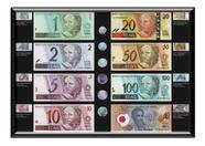 Quadro Expositor Coleção Moedas Comemorativas Plano Real Cédulas 10 reais polimero e nota 1 real