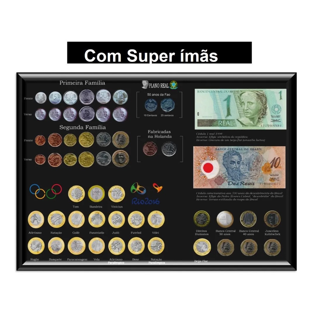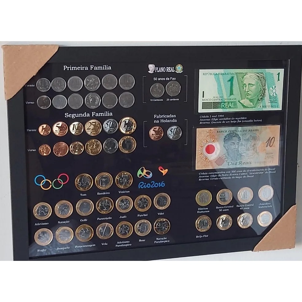 Quadro Expositor Coleção Moedas e Cédulas Comemorativas Plano Real Colecionador Completo