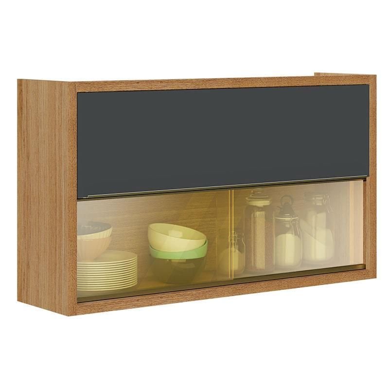Armário Aéreo 2 Portas 1 com Vidro 120 Cm Paola 2003707 Carvalho Dakar Grafite - Aramóveis