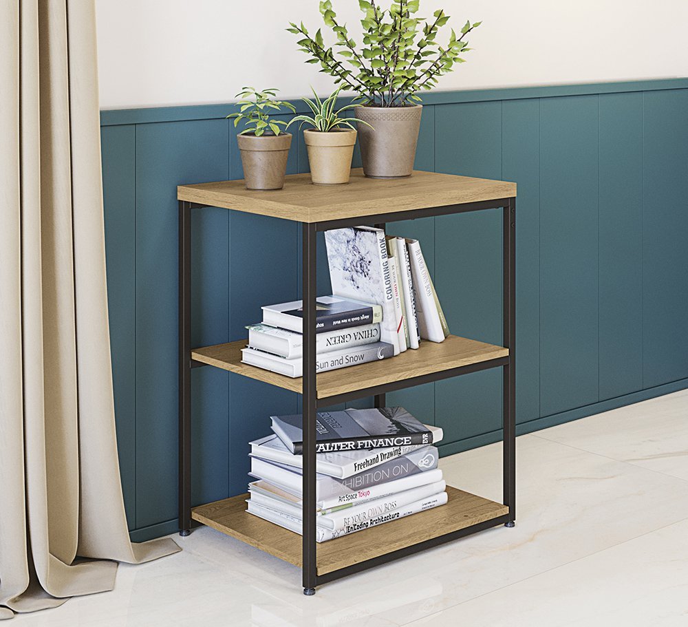 Mesa De Apoio Lateral Com 03 Prateleiras Li004 Freijó/preto Fosco Kappesberg