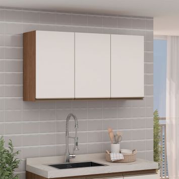 Armário Aéreo Conecta 3 Portas Ébano e Off White