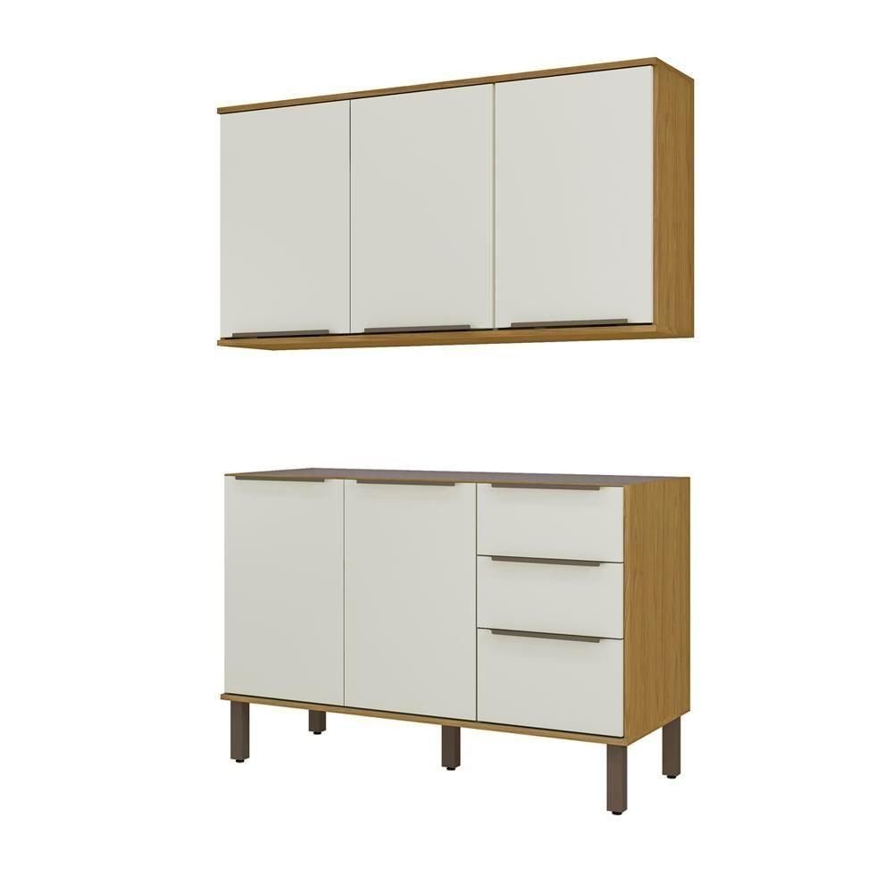 Armario Aereo 3 Portas e Balcao 120 cm Castanha Off White POQQ