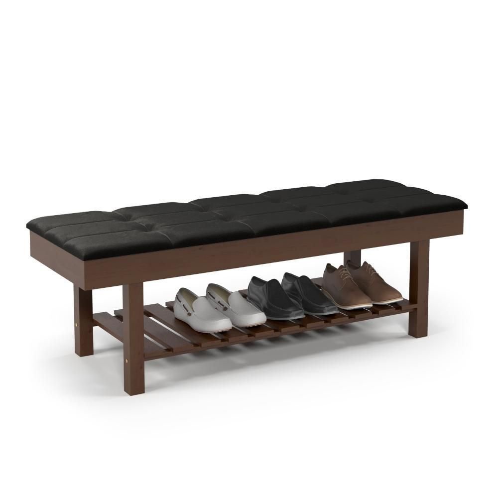 Banco Em Madeira Almofadado Com Sapateira Preto Pavia Rubi Ofertamo