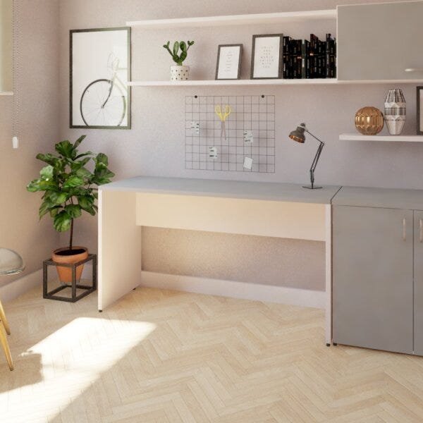 Escrivaninha Mesa Escritório 160cmx47cm 160cm Branca E Cinza Cristal