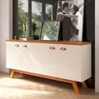 Aparador Buffet 4 Portas Pés de Madeira Retrô para sala de jantar 100% MDF Eva Cimol Off White/Nature