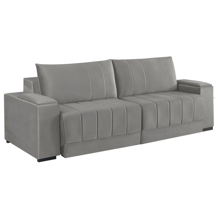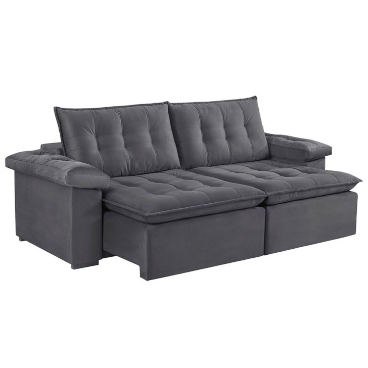 Sofa Cama 4 Lugares Retrátil e Reclinável Paris 2,10m Veludo Cinza