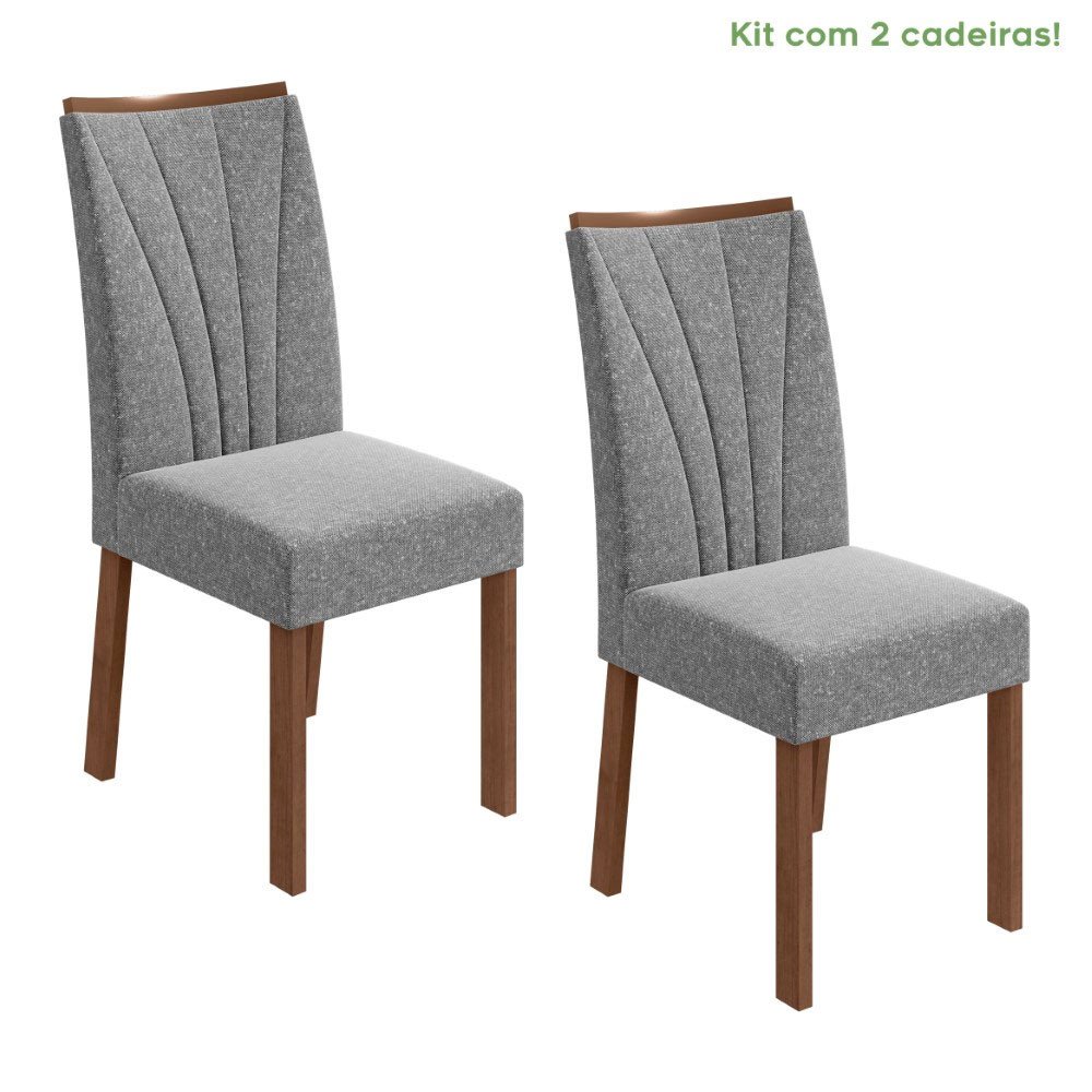 Conjunto com 2 Cadeiras Apogeu Linho Cinza e Imbuia Clean