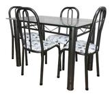 Mesa De Jantar cozinha Com 4 Cadeiras Munique tampo de vidro 8mm Retangular 1.20m em Aço Cor Craqueada cinza campeã de vendas