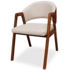 Poltrona Mona Luxo Madeira Maciça Tecido Linho Bege Claro