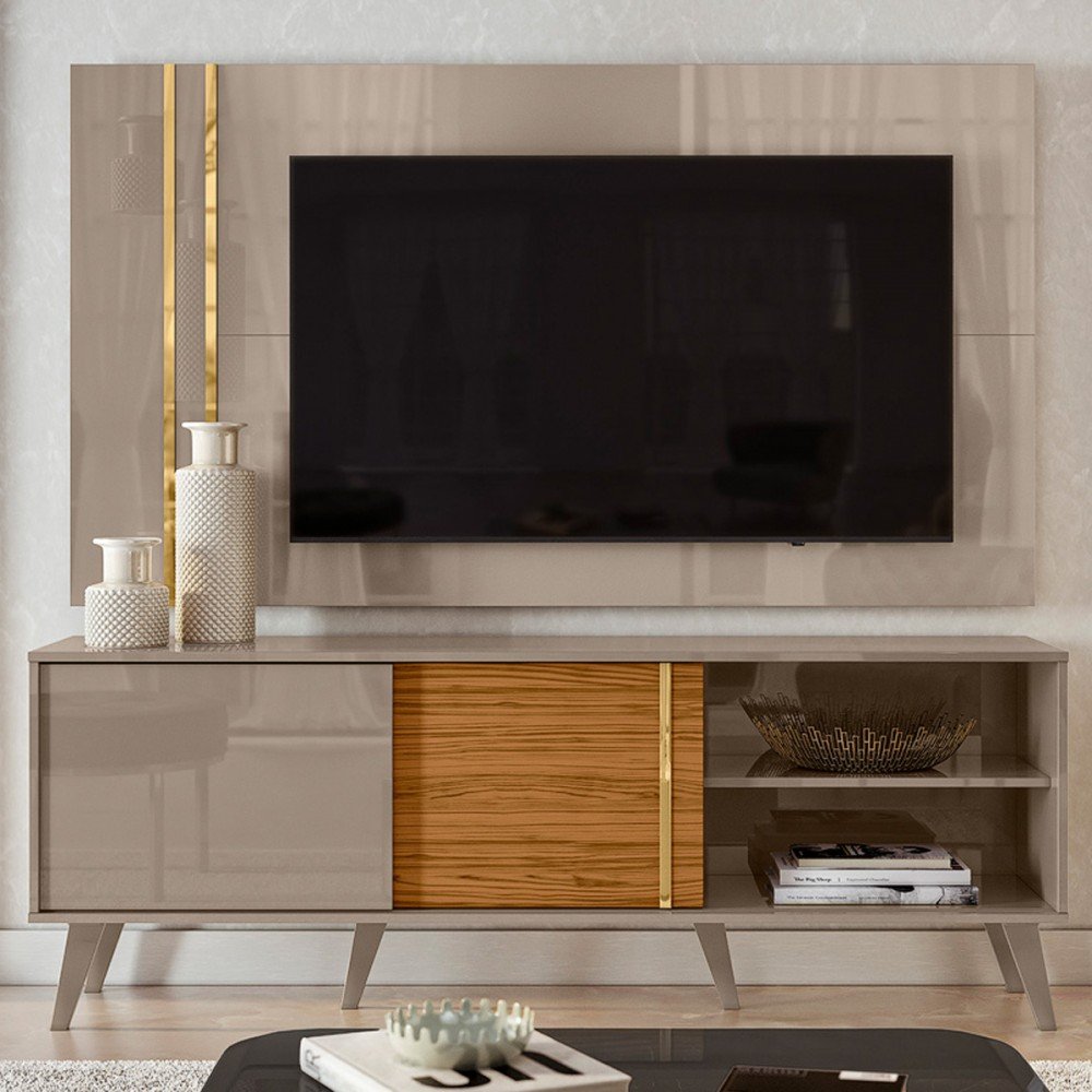 Rack para TV até 65 Polegadas Impar 2 PT 1 GV Cinamomo e Off White