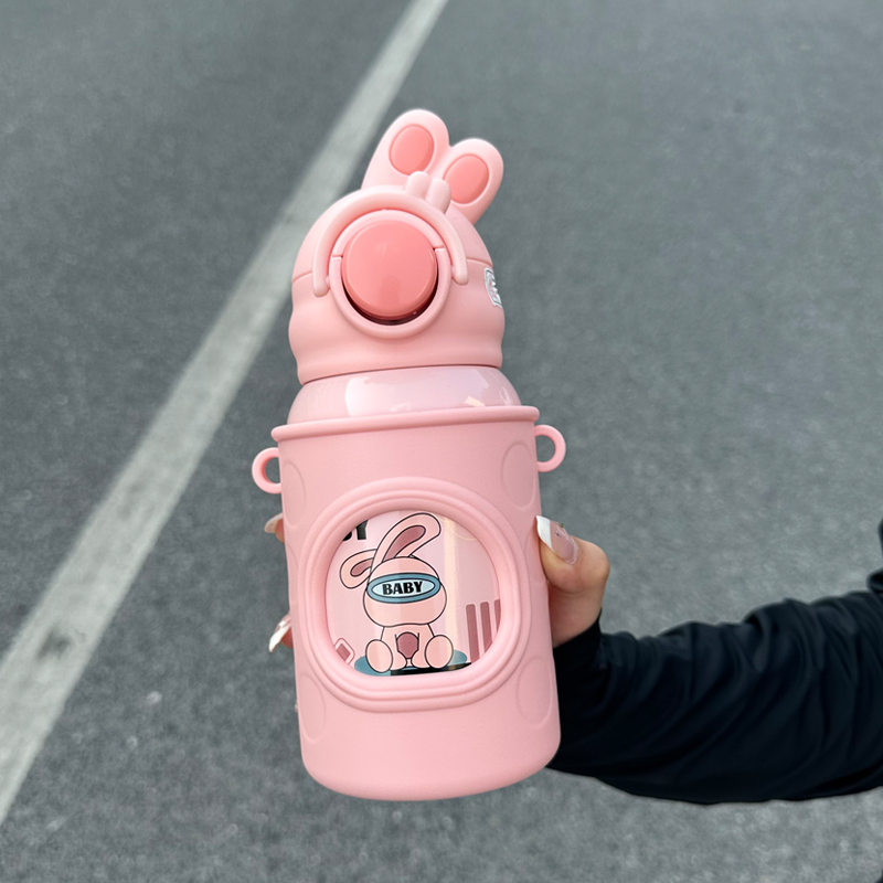 Yy Rabbit Coelhinho Pote de desenho animado infantil Doll Bounce Lid Thermos Cup com corda Isolamento térmico portátil Armazenamento a frio 12 horas podem ser usados como presente