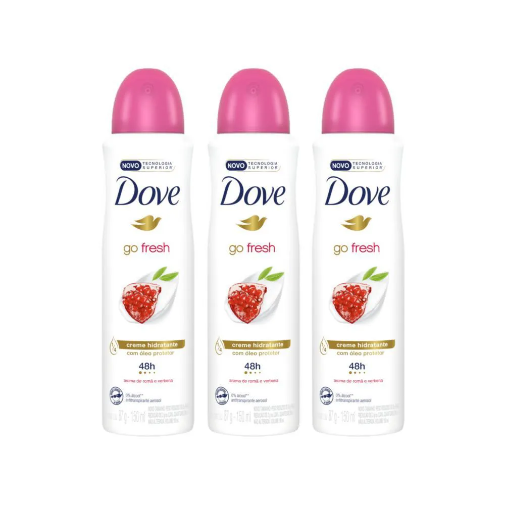 Kit Desodorante Antitranspirante Aerosol Dove Go Fresh Romã e Verbena Feminino 48h 150ml 3 unidades