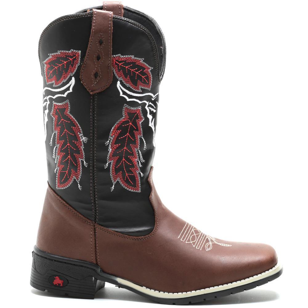 Bota Botina Texana Country Masculina Arame Em Couro Legitimo Bordado Bico quadrado Cano Longo Rodeio Solado em borracha costurado