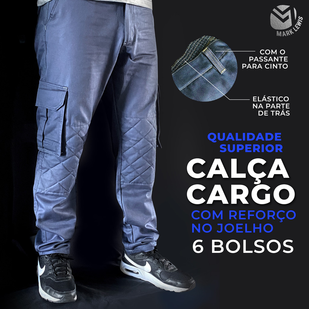 Calça Cargo Rip Stop Reforçada com proteção no Joelho - Passador para cinto Masculina Proteção UV