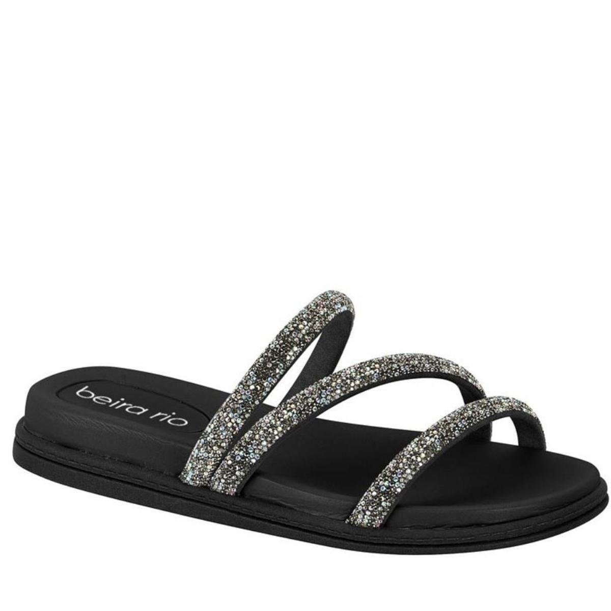 Sandalia Beira Rio Feminina Papete Strass Pedraria Conforto - Preto - 38