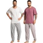 KIT 2 Pijama Masculino Com Bolso WLS Modas Manga Curta Calça Longa Estampada Conforto Linha Noite