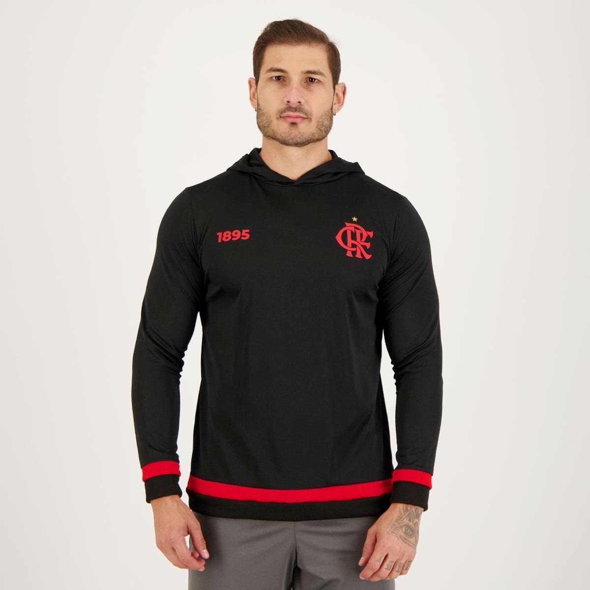 Blusão Flamengo Tron Com Capuz Manga Longa Preta