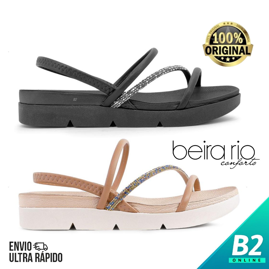 Sandalia Papete Beira Rio Feminina Strass Pedraria Conforto Original