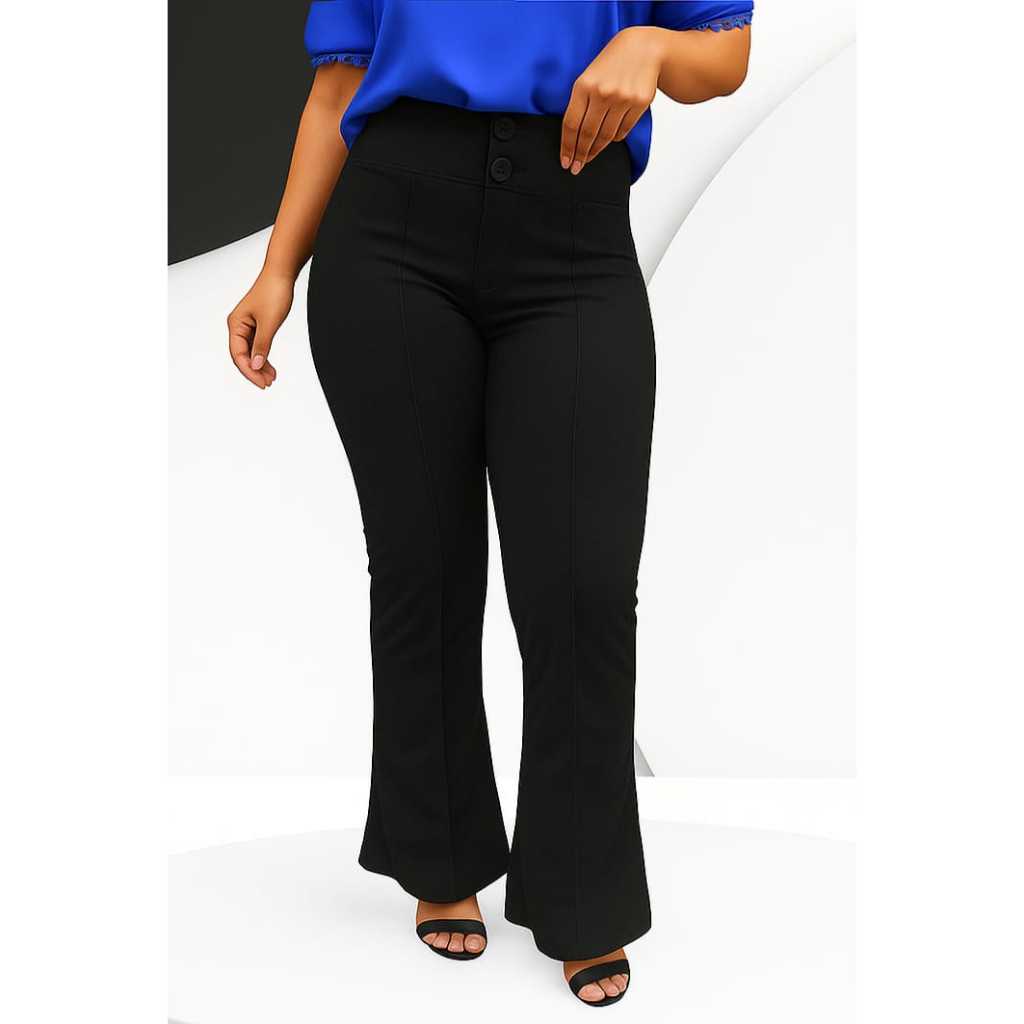 Calça Social Flare Feminina Para Fardamento, De Malha Scuba Com 6% Elastano e 94% Poliéster Do PP ao XGG Veste muito bem