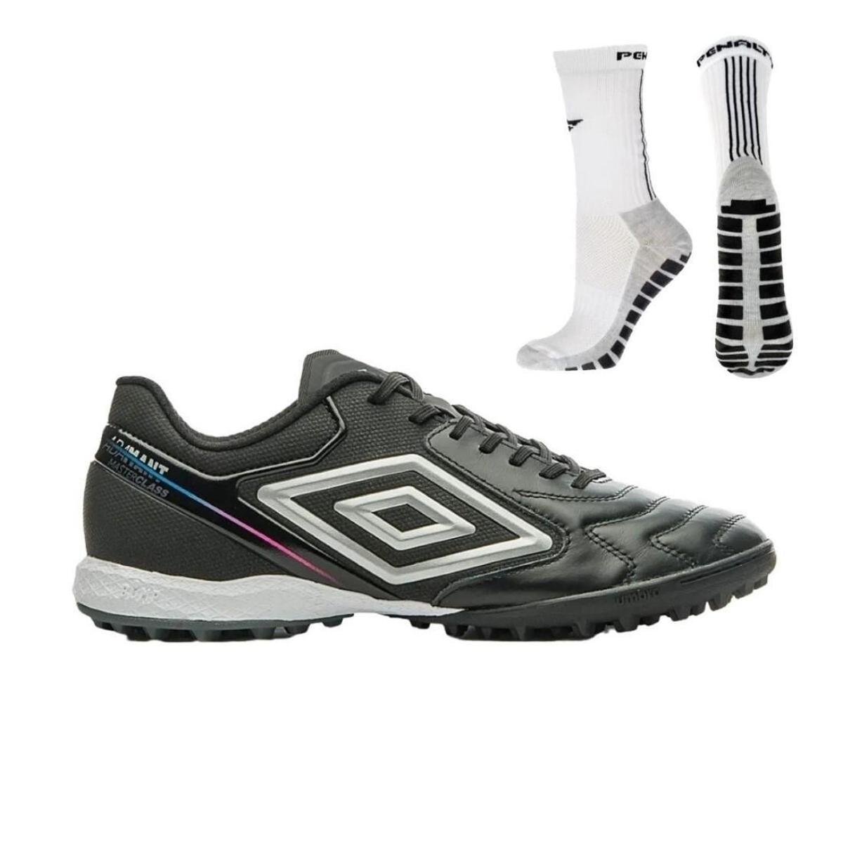 Kit Chuteira Society Umbro Adamant Master Class Premier + Meia Antiderrapante Branca