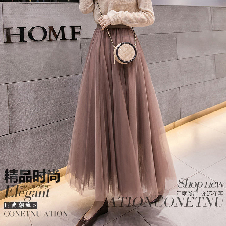 [3-Layer Mesh E 1 Lining] Mid-Length High Waist Swing Dress Skirt Wide Hem Gauzy Gauze Saia Feminina De Verão