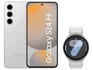 Smartphone Samsung Galaxy S24 FE 256GB Cinza - 5G + Smartwatch Watch7 Prata 32GB Bluetooth