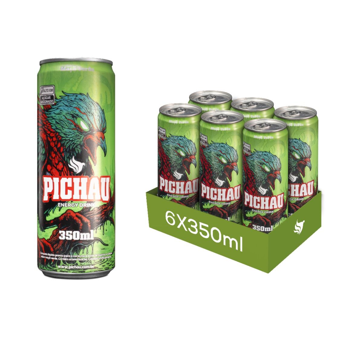 Pack Energetico Pichau Maca Verde, 350ml, Com Acucar, Com 6 unidades